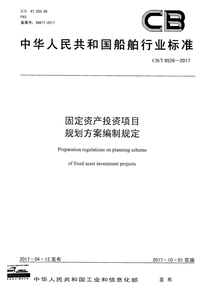 CB/T 8526-2017 固定资产投资项目 规划方案编制规定