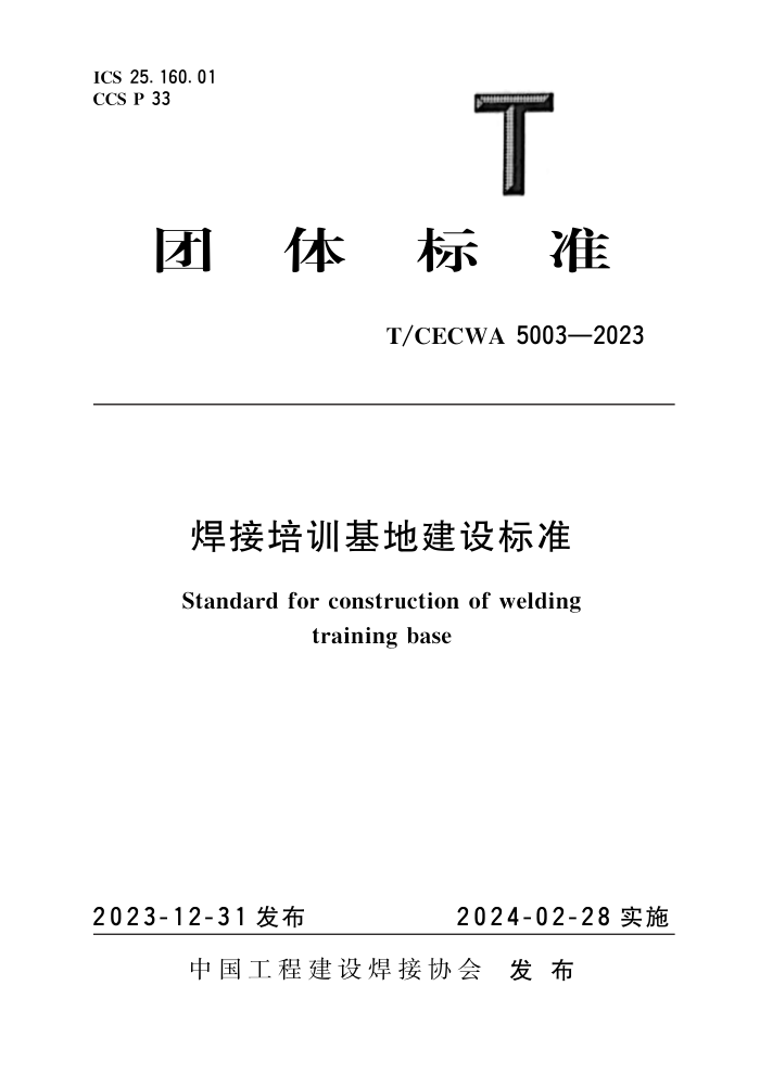 T/CECWA 5003-2023 焊接培训基地建设标准
