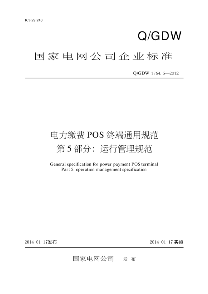 本部分规定了国家电网公司电力缴费POS终端的运行管理要求;