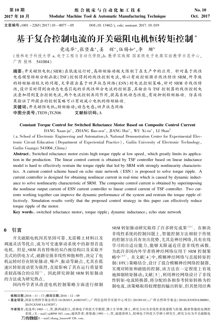 Key words: switched reluctance motor; torque ripple; dynamic inductance; echo state network
