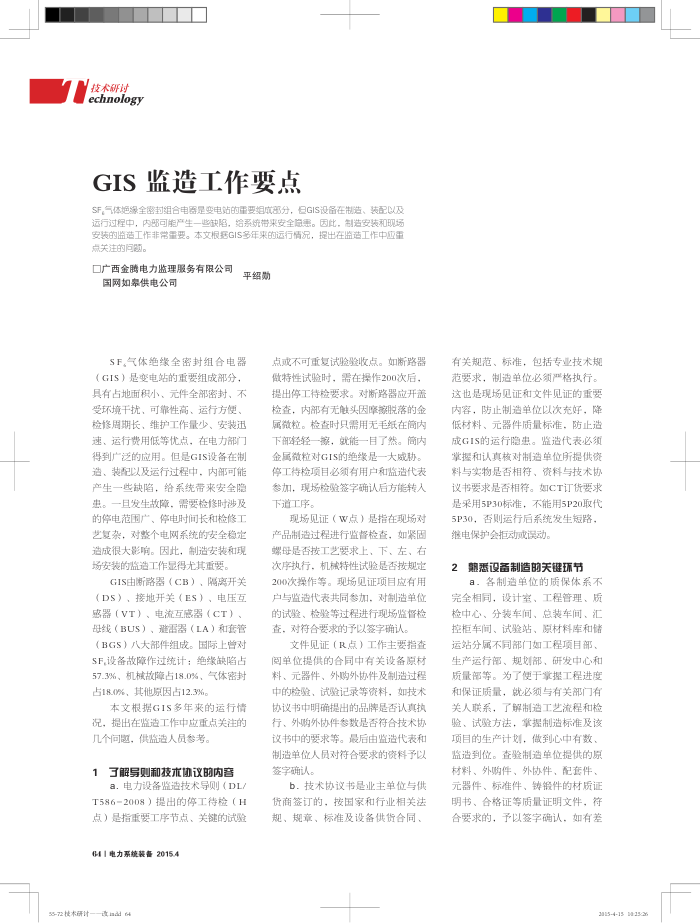 S监造工作要点 GIS