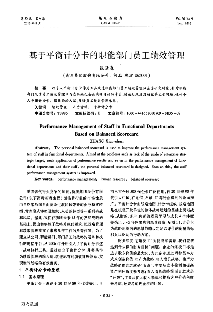 现燃气战略的有效落实。 1平衡计分卡的原理 1.1基本原理