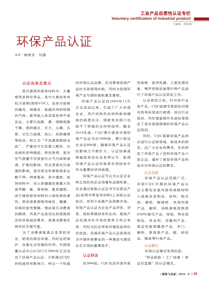 环保产品认证 =文/杨孝光刘源