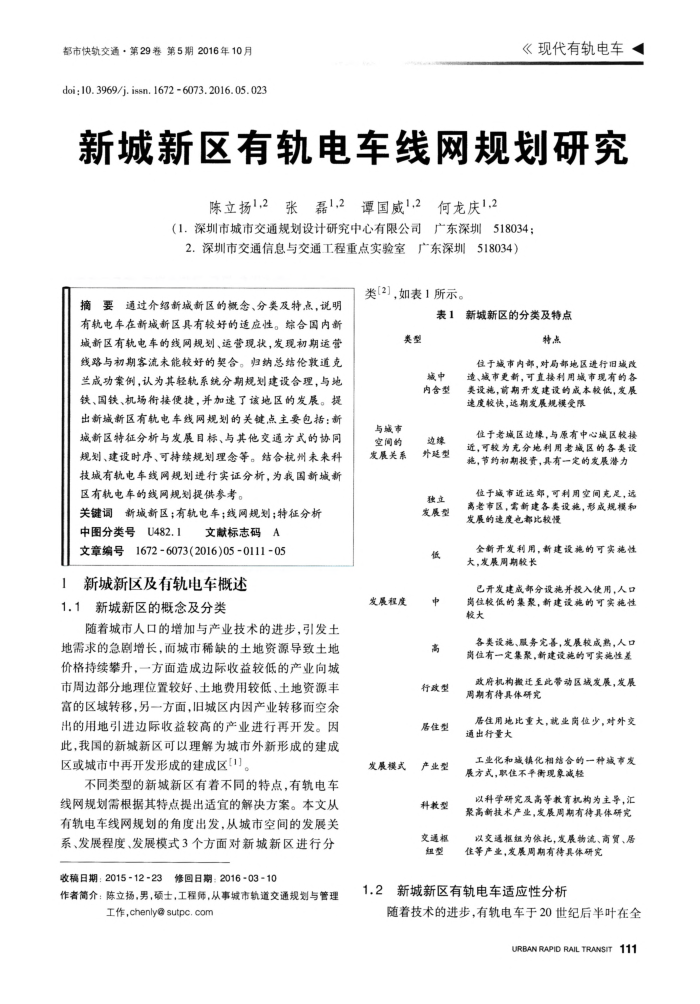 不同类型的新城新区有着不同的特点,有轨电车线网规划需根据其特点提出适宜的解决方案。本文从有轨电车线网规划的角度出发,从城市空间的发展关系、发展程度、发展模式3个方面对新城新区进行分
