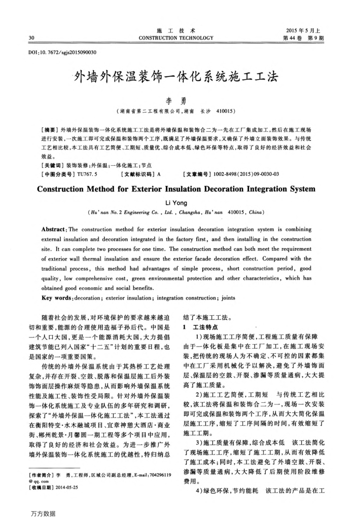 ConstructionMethodforExteriorInsulationDecorationIntegrationSystem