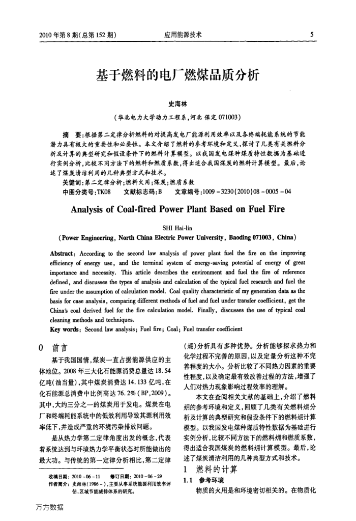 关键词:第二定律分析;燃料火用;煤炭;燃质系数