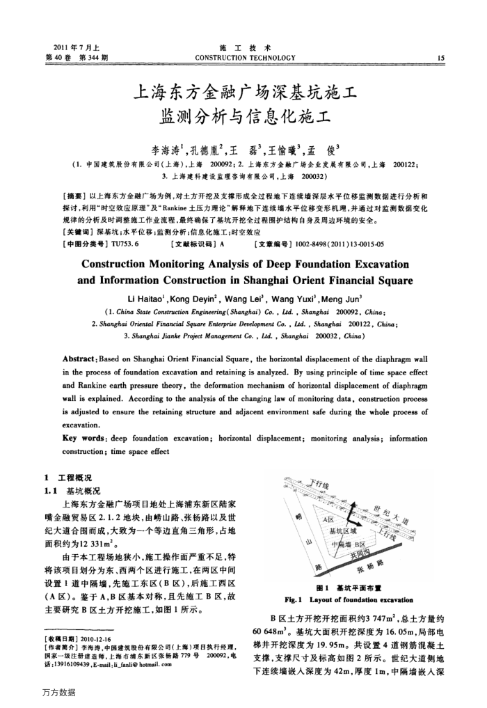 上海东方金融广场深基坑施工监测分析与信息化施工