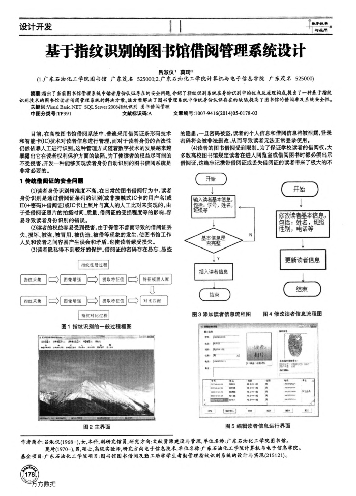 基金项目:广东石油化工学院项目:图书馆图书借阅及勤工助学学生考励管理指纹识别系统的设计与实现(215121)。 78