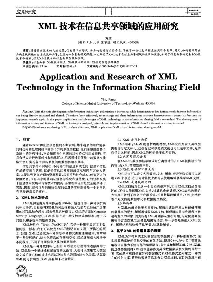 XML技术在信息共享领域的应用研究
