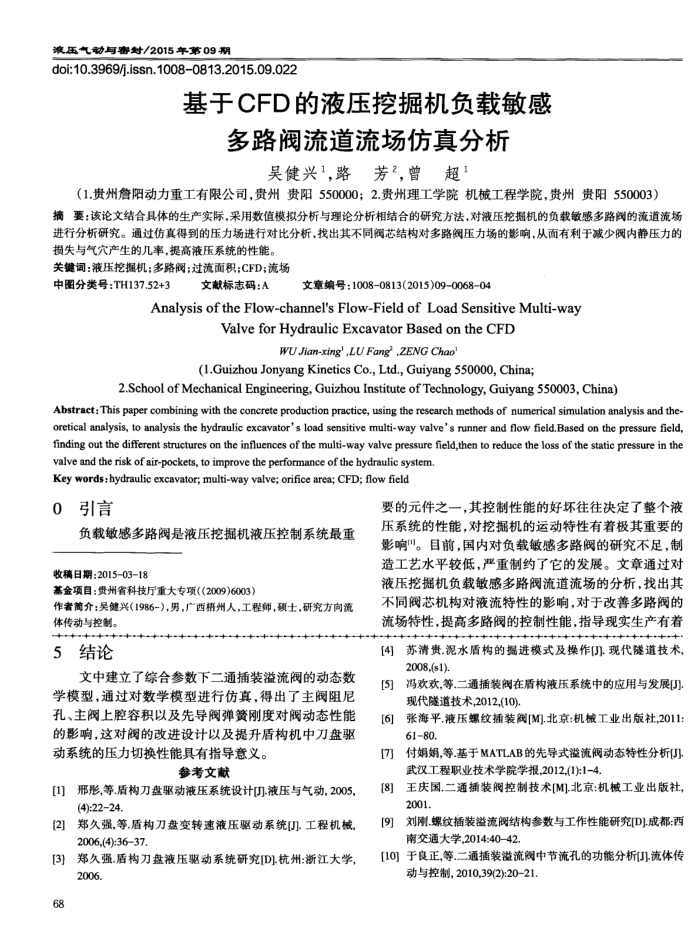 损失与气穴产生的几率,提高液压系统的性能。关键调:液压挖掘机:多路阀:过流面积;CFD;流场