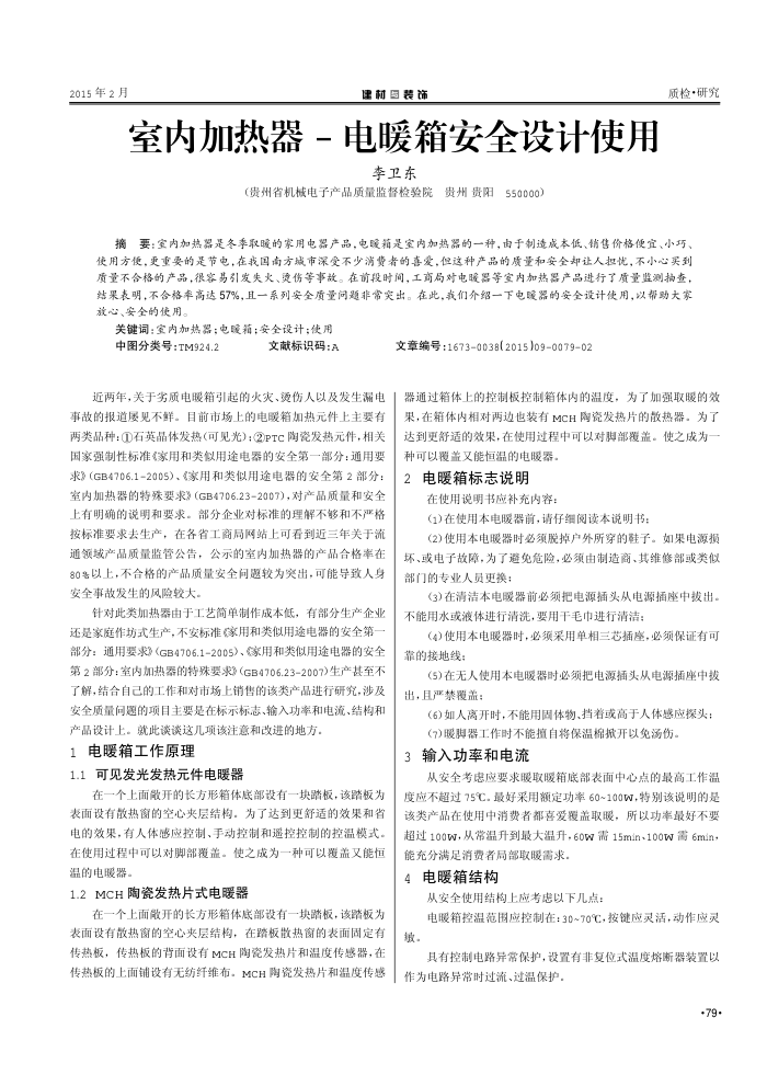 关键词:宝内加热器;电暖箱;安全设计;使用中图分类号:TM924.2