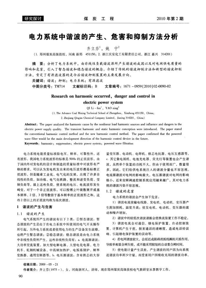 电力系统谐波-基本原理、分析方法和滤波器设计