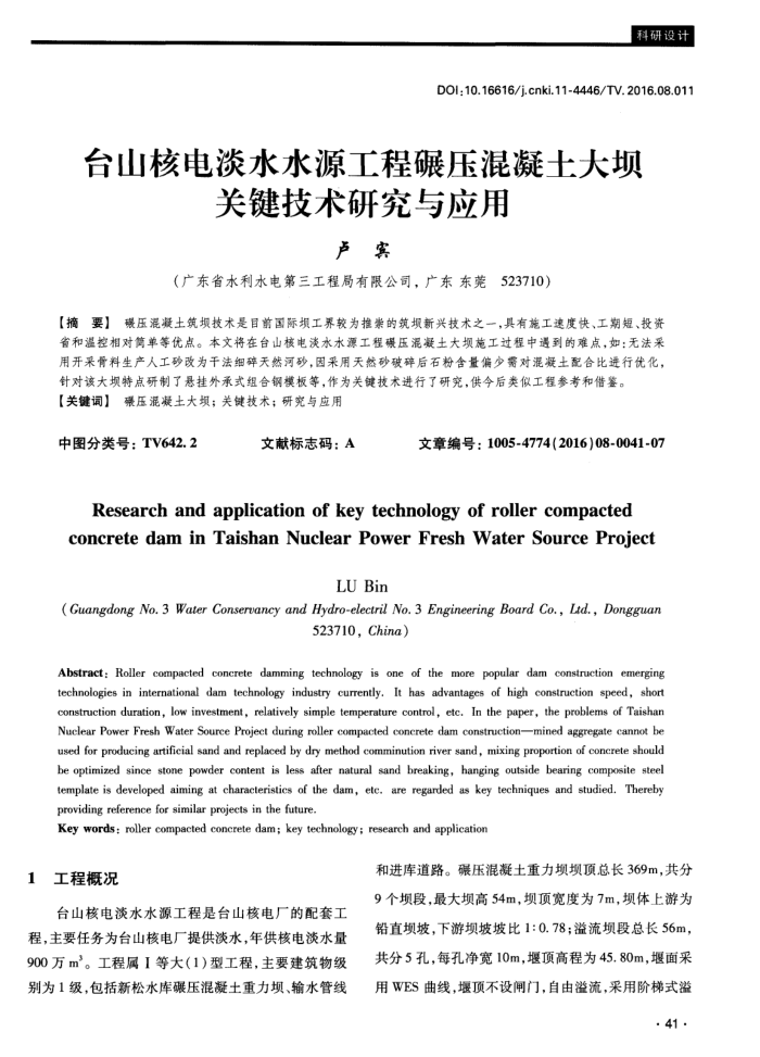 推荐标签: 混凝土 大坝 核电 工程 应用 水源 关键 研究 技术研究 淡水 碾压 台山 碾压