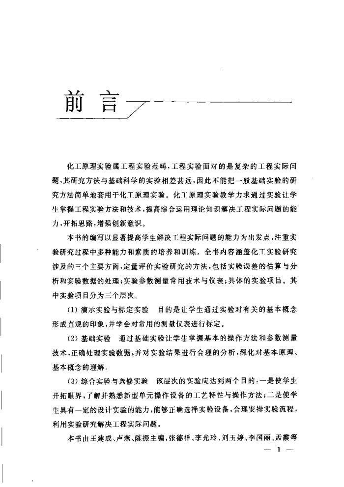 本书作为化工原理实验教材,内容包括实验数据的误差分析、实验数据处理、常用化工实验测量仪表、演示实验与标定实验、基础实验、综合实验与选修实验,共6章。 本书突出工程实验的特点,强调基础理论与工程实践相结合,强调工程观念的培养,注重化工实验的共性问题。 本书可作为高等院校化工、轻化工及相关专业化工原理实验教材,亦可作为从事相关研究、设计与生产的工程技术人员的参考书。